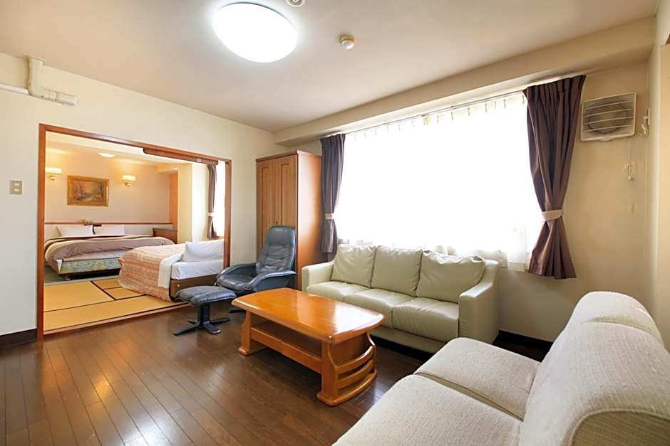 This suite consists of 1 living room, 2 separate bedrooms and 1 bathroom with a bath and free toiletries. The suite provides air conditioning, yukata, heating, a flat-screen TV with satellite channels, as well as mountain views. The unit offers 2 beds.